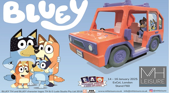 Previewing MH Leisure’s appearance at Eag, General Manager Gareth Jones said: “Bluey our first licensed children’s ride will be making its world debut from our stand at Eag Expo. The Bluey brand has instant recognition and the ride carries massive appeal. The family 4×4 ride features characters, music and voices which children know and love.