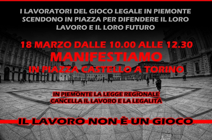 Manifestare “per” e non “contro”. È l’obiettivo dell’iniziativa organizzata dai lavoratori del gioco legale del Piemonte, e da alcune associazioni rappresentative del settore, che di pari passo proseguono le interlocuzioni con la politica, per il 18 marzo “a supporto della Regione per la modifica della legge regionale” che dal 20 maggio entrerà in vigore a tutti gli effetti anche per le attività già in essere nel 2016, decretandone la sostanziale espulsione dal territorio.