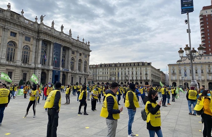 Lavoratori del gioco in piazza a Torino, la cronaca della manifestazione