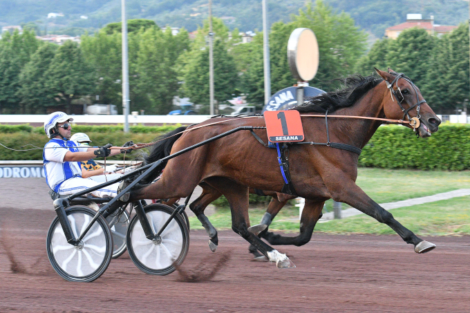 All’Ippodromo Snai Sesana di Montecatini Terme primo appuntamento di luglio con un sabato sera di corse le corse che ha visto al centro del programma il Premio Totoo del Ronco, una prova a resa di metri per cavalli anziani. Battuto in zona traguardo in due precedenti corse della riunione, Antonio Di Nardo si rifaceva nella prova più importante portando alla vittoria Anouk Grad: il cavallo di Enzo D’Isanto sfruttava al meglio la posizione al primo nastro e conquistava il comando, poteva gestire il ritmo, sul penultimo rettilineo allungava in progressione e seppure con qualche brivido nel finale riusciva a salvarsi dalla rimonta di un ottimo Alfred, progredito da fondo gruppo per corsie esterne nei