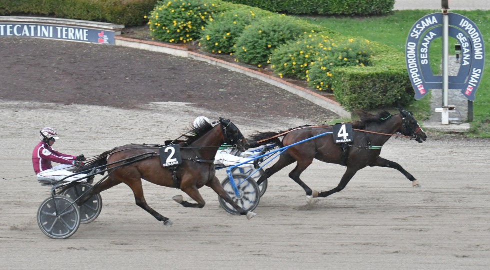Chiudeva la riunione il Premio Pasticceria, dominato da cima a fondo da Duchessa Hp: la cavalla di Holger Ehlert affidata a Alberto Garruto trovava poche attenzioni al betting ma dominava la corsa senza mai un problema, trottando i 1640 metri a media di 1.16.5. Divina Stella recuperava bene nei 300 finali e chiudeva seconda rimontando l’appostato Dribbling Op.