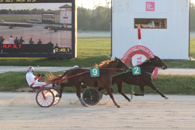 All’Ippodromo Snai La Maura Trotto di Milano venerdì di corse con i puledri protagonisti nelle due prove di maggior dotazione. Nel Premio Tactical Landing, la prova sui 2250 metri per cavalli non vincitori di 4 mila euro in carriera, Diana Italia confermava la valida impressione destata in occasione della precedente vittoria: la portacolori della scuderia W Giovane Italia, con Andrea Farolfi, avanzava al largo, poteva brevemente sistemarsi seconda con la “complicità” del compagno di training Desiderio D’Esi (guidato da Mauro Baroncini, appiedati entrambi i driver)) ma tornava presto all’esterno per anticipare le mosse di Javerne e non rischiare di rimanere chiusa: in pratica affrontava gran parte del percorso allo scoperto in pressing sul battistrada Dubhe Prav, sul quale reiterava l’attacco in retta e ne sfruttava l’errore in zona traguardo per imporsi a media di 1.16. Difficile dire come sarebbe andata senza l’incertezza del portacolori della scuderia Sant’Eusebio (che per la terza volta consecutiva ha gettato al vento la possibilità di disputarsi la vittoria) ma in ogni caso la figlia di Bold Eagle è piaciuta per grinta e qualità. Desiderio D’Esi sfruttava le evenienze per far suo il secondo posto per un en plein di marca “Divignano”, mentre Dali Prav chiudeva al terzo posto.