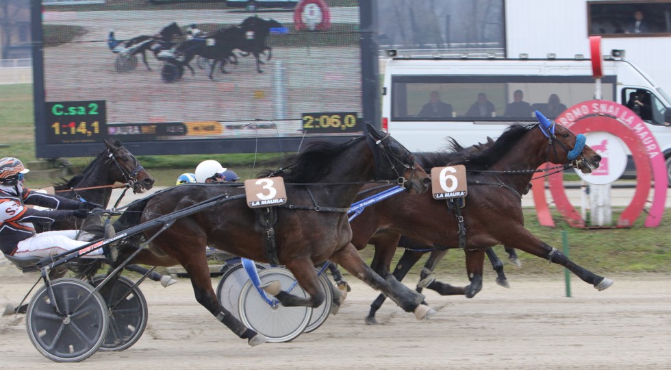 All’Ippodromo Snai La Maura di Milano l’ultimo giorno dell’anno ha coinciso con la 55^ giornata stagionale di corse di trotto in attesa di rivedere i cavalli in pista nel pomeriggio di giovedì 5 gennaio del 2023. Sul circuito di via Lampugnano 95, tra le sette corse in programma, gli occhi erano puntati alla quarta prova, il Premio Crazy Wow, che ha visto protagoniste le femmine di 2 anni sul miglio e nella quale Rouge Terre, che si presentava da imbattuta dopo due vittorie, aveva letteralmente monopolizzato il betting. L’allieva di Erik Bondo, però, è apparsa in giornata-no sin dalle prime battute: Federico Esposito l’ha guidata in punta di dita provando a tenerla di trotto e ad avvicinare gradualmente la battistrada Elettra Bright ma quando ai 400 finali l’ha richiesta allo sforzo, la tedesca si è abbandonata di galoppo. Elettra Bright, al comando, ha approfittato al meglio della situazione gestendo a piacimento i parziali e completando un primo km in 1.19.4, poi sull’errore della rivale si è ritrovata in chiaro vantaggio e in retta, sollecitata dal suo interprete Andrea Farolfi, ha tenuto a distanza di sicurezza la debuttante Esperia Font, trascurata dagli appassionati nonostante la genealogia e il training di prim’ordine. Secondo successo consecutivo, quindi, per la figlia di Rod Stewart che difende i colori di Marco Castaldo. Elektra Ob Ferm ha sfruttato le evenienze per terminare terza, la sfortunata Extra Wind è stata coinvolta dall’errore di Rouge Terre sull’ultima curva: probabilmente avrebbe lottato per un buon risultato.