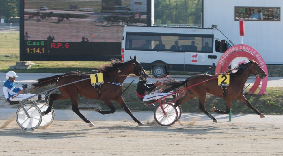 La connection Mauro Baroncini-Andrea Farolfi timbrava il cartellino nel Premio Kading grazie ad un superlativo Django As: il portacolori della Pachino Horse affrontava l’ultimo km allo scoperto, metteva pressione alla battistrada Dalila Bar (penultimo quarto in 28.3) e passava da padrone in retta a media di 1.12, demolendo il precedente record di 1.14. Dalila Bar ha poco da rimproverarsi avendo dovuto spendere al via per provare la corsa di testa, mentre uno sfortunato Daniel Av trovava la destra libera solo sull’ultima curva e chiudeva terzo in spinta.