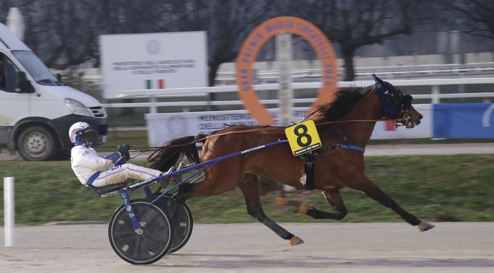 La prova clou, trasformata da quest’anno in handicap ad invito ed inserito nel circuito delle prove di Gruppo III riservate agli anziani che vedrà la finale disputarsi proprio a Milano in aprile, abbinata al Premio Ettore e Mario Barbetta. Corsa che si presentava all’insegna dell’incertezza, anche se si guardava principalmente allo start. Diamond Francis era sicuramente tra i principali “indiziati” al primo nastro, in virtù di una classe che però il vincitore del Mangelli ’22 non ha saputo esprimere con continuità nel corso della sua carriera. Abituale interprete del cavallo allenato da Agim Piranej, Andrea Farolfi è stato bravissimo a gestire un soggetto solitamente molto “delicato” nella fase iniziale: Diamond Francis ha girato benissimo, si è incuneato tra i cavalli tagliando fuori Cocco Bfc e in mezzo giro ha rilevato al comando Castaldo Cas: una volta in testa, la qualità del figlio di Exploit Caf è emersa limpida e cristallina, e con una percorso in 1.13.8 sui 2.120 metri ha lasciato i rivali a guardargli la coda, allungando ancora sicuro in retta. Strepitoso anche il secondo posto di Dylan Dog Font: in difficoltà nel Ponte Vecchio, stavolta il cavallo di Mauro Baroncini è tornato al massimo rendimento, ha affrontato un percorso onerosissimo e nonostante il gran ritmo imposto dal vincitore si è mantenuto in quota sino all’ingresso in retta, e poi quando il vincitore ha allungato sicuro verso il traguardo ha comunque preso la meglio per il secondo posto sull’appostato Castaldo Cas, che era stato il più veloce nella giravolta. Quarto a ridosso il duttile City Lux, quinto migliorando lungo lo steccato Etereo Jet a completare il marcatore (la corsa era valida come Tris/Quarté/Quinté). Gli altri che hanno affrontato il tragitto all’esterno (compreso Cocco Bfc, anticipato nella giravolta da Diamond Francis ma che poi ha potuto usufruire della scia di Dylan Dog Font), non sono riusciti a farsi avanti nel finale.
