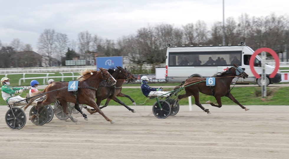 Testa, melina e allungo finale la ricetta vincente con la quale Giorgia del Ronco rispettava il ruolo di favorita nel Premio Temon You Sm, replicando il successo torinese di fine febbraio. Ci pensava comunque Golden Gec a dare una corsa all’allieva del team Baroncini-Azzaroni guidata da Marco Stefani, costringendola a impegnarsi nei 400 metri finali, ma la portacolori della My Horse dopo un primo chilometro tranquillissimo in 1.17 scarsi rispondeva bene e vinceva in controllo a media di 1.14.9. Più indietro, Grace Tor terminava al terzo posto.