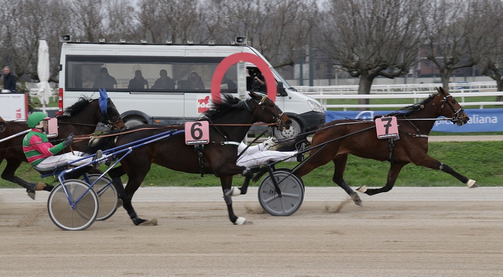 Il pomeriggio trionfale di Alessandro Gocciadoro è stato impreziosito dai successi di Geber’s Dream nel Premio Tresor Dream e di Exuma Bi nel Premio Tessy D’Ete: dopo il successo ottenuto al debutto a Treviso, il 3 anni da Donato Hanover ha messo in campo un’altra prestazione solida con un sicuro percorso di testa a media di 1.14.4, nuovo personale. Bene ha corso Gitana Bar, che ha affrontato un percorso dispendioso in risalita esterna e solo sul palo ha perso il secondo posto, battuta da Geremia Jet, entrambi al nuovo personale. La biasuzziana invece nella prova di chiusura ha centrato la dodicesima vittoria della carriera (in 20 uscite, niente male davvero) superando brillantemente l’esame della partenza da fermo: subito in testa, la figlia di Donato Hanover ha ribattuto al primo tentativo di Espresso Italia (che si scavava un posto in scia alla rivale) e poi con un ultimo chilometro in 1.12 ha spento le ambizioni del cavallo di Baroncini, costretto ad adeguarsi al secondo posto. Media di 1.14.8 sui 2120 metri per la vincitrice, con Dynamite Bar che ha concluso al terzo posto. Altra prova di ottimo spessore tecnico era il Premio Terra Dell’Est, una prova a resa di metri per soggetti di categoria A/B/D: Ciel Joyeuse sfruttava l’ottima posizione di partenza allo start per portarsi subito in testa, andava via a passo costante (km in 1.11.9) ma in zona traguardo subiva l’agguato dell’appostato Alcarro Light (Claudio Monte per Salvatore Carro), che sbucava all’interno e lo beffava a media di 1.11.9. Correva alla grande la penalizzata Diabel, che si portava subito ai lati di Ciel Joyeuse e nonostante il ritmo proibitivo lottava per la vittoria sino in fondo, terminando terza quasi in linea con i primi due.