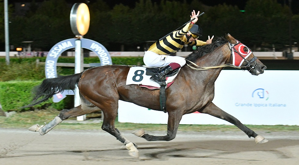 Nel Premio Hormone Balance Trm, la voce della pista con Euphoria Roc “movimentava” il betting, ma a vincere è stata la specialista Cornelia Op, cavalla che davvero ha pochi rivali in Italia in questa disciplina: non bastavano i 40 metri di penalità a fermare l’allieva di Andrea Scatolini, affiatatissima con Antonio Monteriso, la quale ricuciva in breve la duplice penalità sistemandosi terza dietro le due lepri Etrusco Cla ed Euphoria Roc, quindi attendeva i 600 metri finali per muovere all’attacco, passare netta ai 200 finali e imporsi a media di 1.15.7 sui 2080 metri. Etrusco Cla provava a correre da protagonista e poi a reggere l’attacco della vincitrice sull’ultima curva: arrivava provato ma salvava il secondo posto da Euphoria Roc, che non dava mai l’idea di poter vincere.