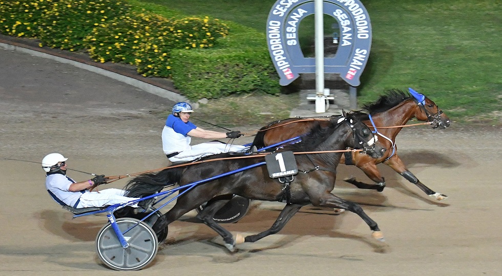 La connection Ehlert-Giuseppe Lombardo jr concedeva il bis nel Premio Allevamento Centauro grazie a Commander Clemar: in testa dal via, il portacolori di Francesca Cardinali si produceva in un allungo perentorio nei 600 finali e concludeva isolato a media di 1.15.5, mentre Birbone dei Colli regolava per il secondo posto Crisallen: fuori quadro chi si avventurava all’esterno, con Chico dei Daltri falloso ai 350 finali e Carlitos Zs in calo sull’ultima curva.