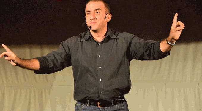 “Nella vita faccio l’attore comico”, esordisce, “ho iniziato nel 1992, e attualmente ancora vivo, principalmente, di questo. Ho fatto Zelig Off, Quelli che il calcio, poi cinque edizioni di Colorado, ma anche Buona domenica, Tortuga e la Tv dei ragazzi. Ma soprattutto ho fatto tanto live, ho incontrato tante piazze, tante località e tanti locali.”