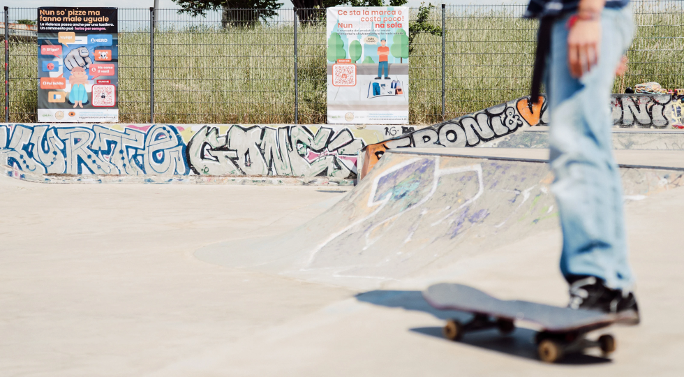Lo skatepark Cinetown a Roma diventa così teatro di questa fusione tra fisico e digitale. Tramite pannelli smart in perfetto stile street art, con frasi in slang romano pensate per catturare immediatamente l'attenzione di skater e gamer, si diffondono i messaggi cardine dell'iniziativa. Ma la vera innovazione sta nel QR code interattivo presente su ogni pannello. Scansionandolo, i ragazzi possono accedere a una serie di esperienze digitali coinvolgenti come video e mini-game sulla sicurezza digitale, quiz per mettere alla prova la propria "cyber-preparazione", "trick segreti" sbloccabili solo rispondendo correttamente ai quiz e consigli pratici per imparare a proteggere dati e profili online.