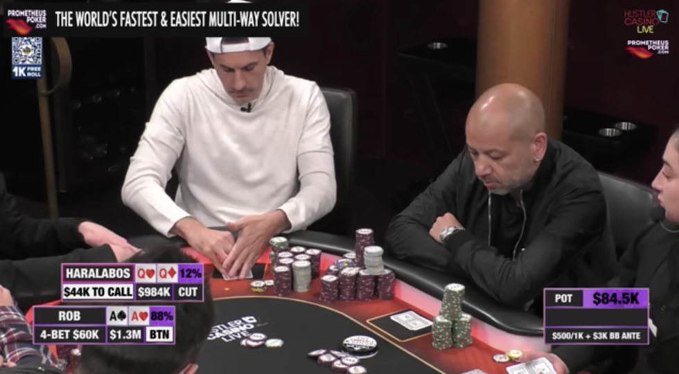 La partita all’Hustler Casino Live era un 500/1000 dollari con 3000 dollari di Bb ante.