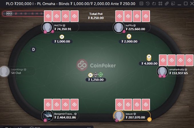 Il nickname è “BenjaminTravesty” e stava giocando ad un tavolo da $1.000/$2.000 Pot-Limit Omaha con giocatori famosi come Leon Tsoukernik e Tony G e Laszlo Bujtas (omaha4rollz). A rivelarlo è stato un tweet di Patrick Leonard: “Questo BenjaminTravesty ha uno stack di $ 2,5 milioni su Coin Poker contro Leon/Tony G/omaha4rollz ecc., è questo lo stack più grande nella storia del poker online?”.