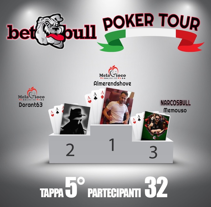 I risultati della quinta tappa del BetBull.it Poker Tour con il club Me La Gioco di Montichiari al comando della classifica generale.