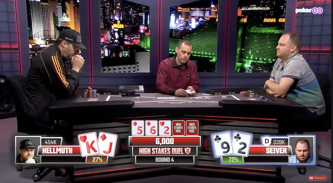 Il PokerGO Studio, presso l’Aria Resort & Casino di Las Vegas, è stato ancora una volta il palcoscenico di questo grande spettacolo. Duello in cui Hellmuth è partito meglio, ma Seiver ha risposto molto bene e con ferma per poi prendere il comando. Ma ancora una volta Hellmuth ne sarebbe uscito vittorioso. All’ultima mano Seiver ha floppato una doppia coppia, ma Hellmuthne ha centrata una superiore. Le due mani non sono cambiate con l’avvento del turn e del river ed Hellmuth è riuscito a vincere un round dell’High Stakes Duel per la nona volta.