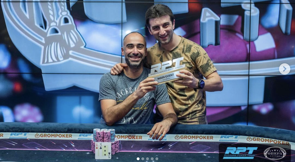 I cinque players left del main event del Russian Poker Tour di Minsk hanno visto freezare l’action con stack che sembravano oscillare sempre verso le stesse quantità mano dopo mano. Così hanno deciso di fare deal tra i primi cinque classificati e giocarsi il titolo e 5mila dollari per chi sarebbe finito in testa. A vincere, alla fine, Tigran Piloyan, player armeno in un field prevalentemente russo. Per lui un successo denso di significati: "Gioco da molto tempo, ma non spesso. Sono venuto in questo evento con il mio amico (Eduard Bagrov, nella foto con il winner), che conosco dal primo anno di università. Abbiamo studiato insieme il poker e imparato combinazioni e strategie e alla fine abbiamo iniziato a giocare tornei e siamo venuti qui a Minsk”, ha confessato Tigran al Russian Poker Tour.