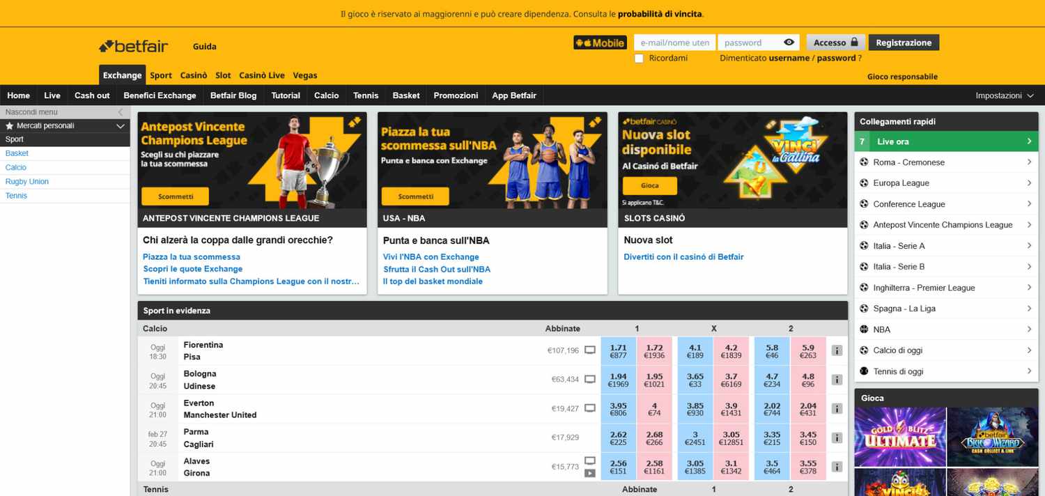 - Quote tra le più competitive del mercato, specialmente sul calcio;